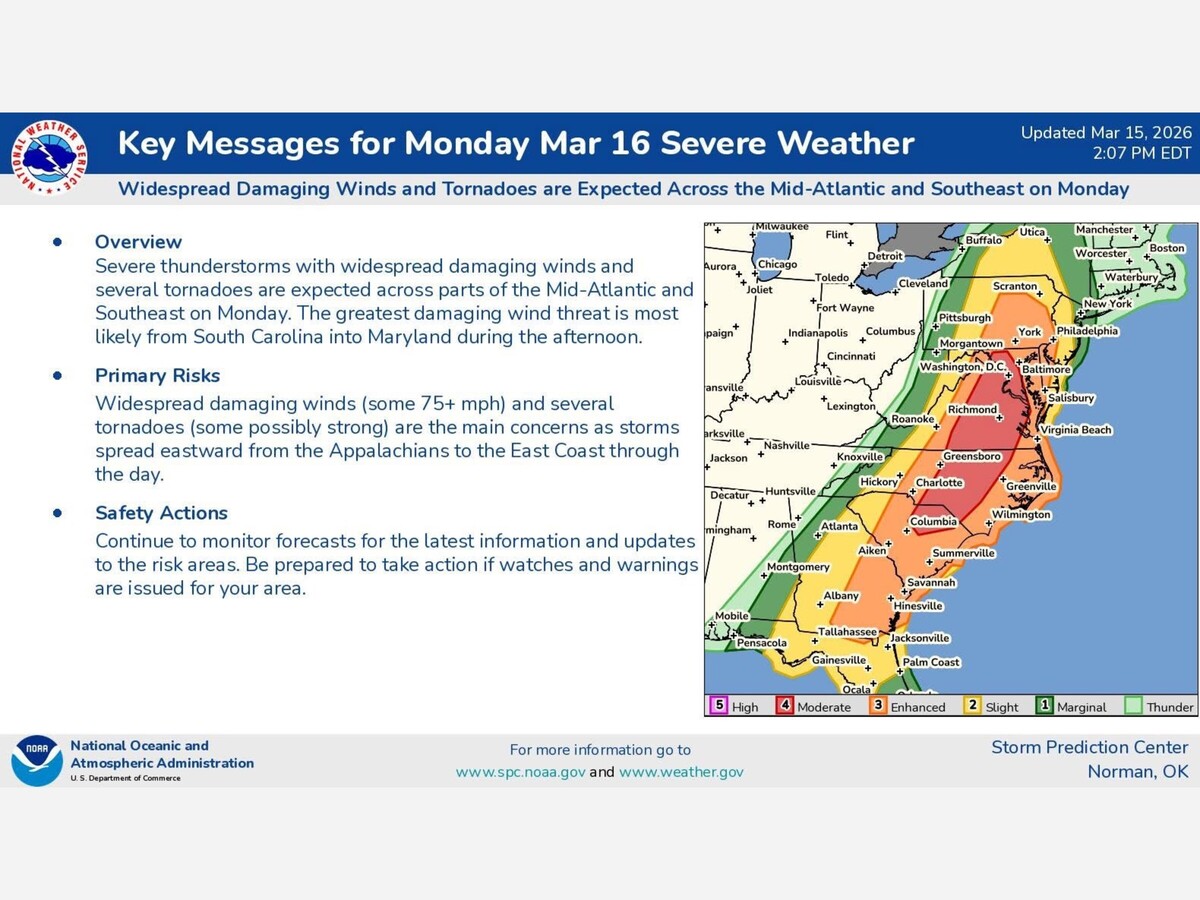 According to The National Weather Service We could have a 83 % chance of Rain, Destructive Winds, Significant Risk of Tornadoes